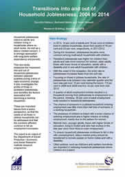Transitions into and out of Household Joblessness, 2004-2014Household joblessness refers to adults and children living in households where no adult works. As well as a labour market concern, it is strongly associated with long-term welfare dependency and poverty. This new study measures the movement into and out of household joblessness between calendar quarters during a time of rapid economic change. It also investigates the profile of those in persistent joblessness, and identifies the factors associated with becoming a working household. These are important issues from a policy perspective, so that the needs of all those in jobless households can be addressed and that the numbers affected continue to fall as employment increases. The report is an output of the Department’s research programme with the ESRI for the Analysis and Measurement of Poverty and Social Exclusion (AMPSE). The authors are Dorothy Watson, Bertrand Maître and Helen Russell. The findings were presented at an ESRI research seminar on 17th September, 2015.